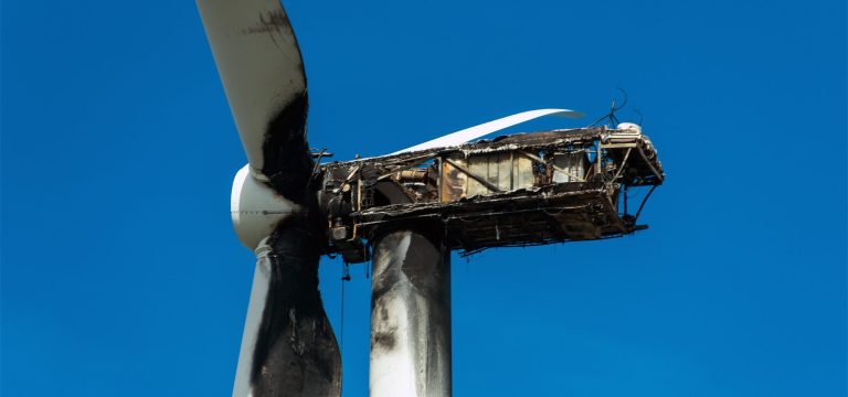 Bei Windkraftanlagen kann Brandgefahr bestehen. Aufgrund der immensen Höhe ist ein direktes Löschen durch die Feuerwehr nicht möglich.