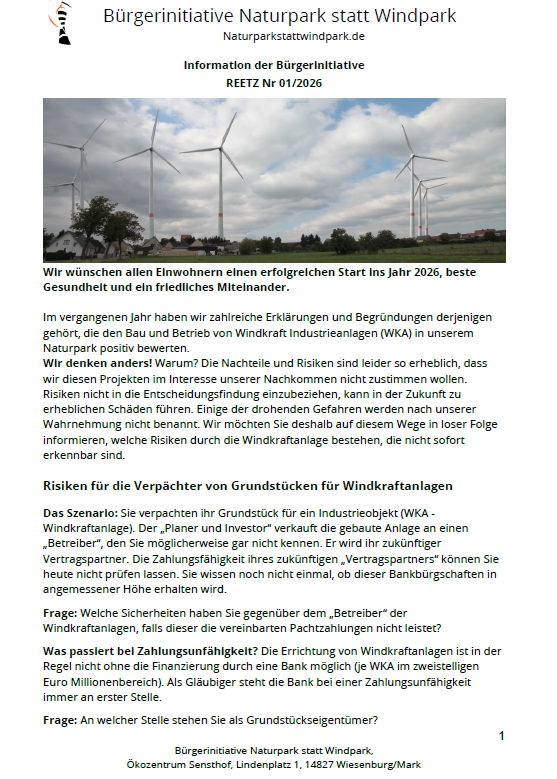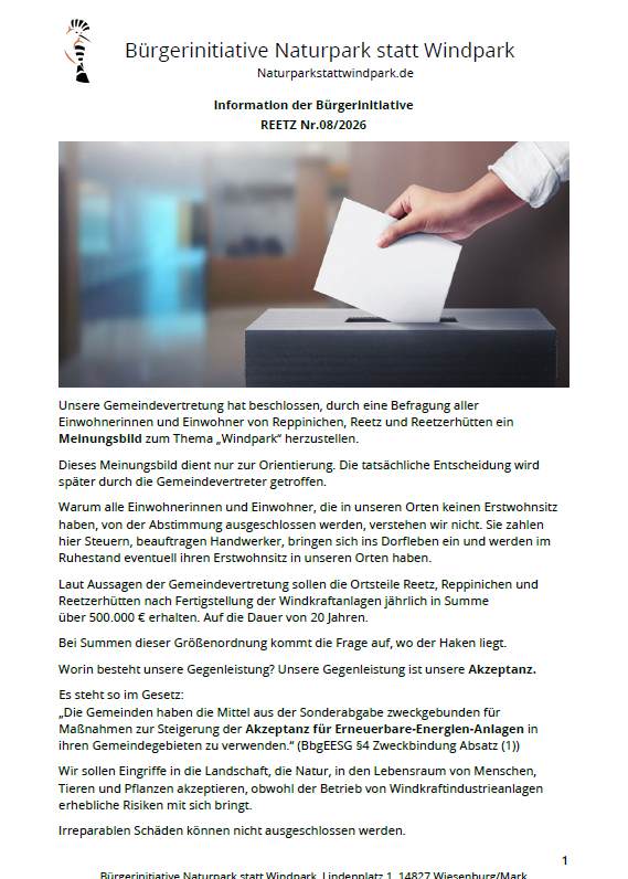 Information der BI Reetz 01
