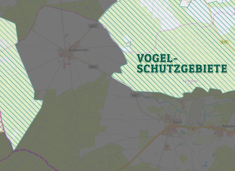 Das Gelände liegt mitten zwischen zwei Vogelschutzgebieten. Es ist kein Windvorranggebiet. Diese wurden im "Sachlichen Teilregionalplan Windenergiernutzung 2027 der Region Havelland-Fläming" ausgewiesen.