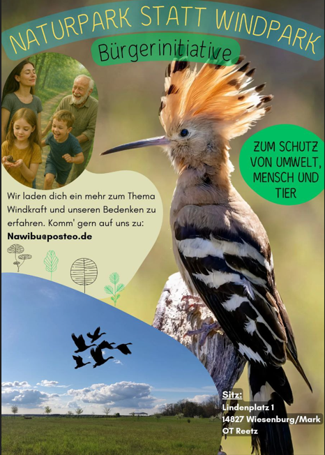 Wir sind eine Bürgerinitiative, die sich für den Schutz des Landschaftsschutzgebiets hoher Fläming einsetzt. Unsere Mission ist es, die sensiblen Ökosysteme, die natürliche Schönheit und die Biodiversität zu bewahren. Wir lehnen daher die geplante Windkraftanlage in der Gemeinde Wiesenburg-Reetz ab.